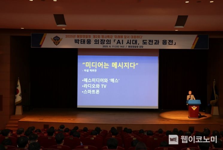 (웹이코노미) 해양경찰청은 새롭게 출범한 정부가 인공지능(AI) 백년지대계를 천명하고 관련 정책의 속도감 있는 추진을 약속한 가운데,'인공지능(AI) 강의 2025'의 저자 박태웅 한빛미디어 의장을 초청해 인공지능의 출현과 현재, 미래를 대비하는 우리의 자세에 대해 알아보는 시간을 가졌다고 11일 밝혔다.