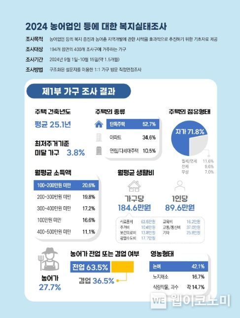 2024 농어업인 등에 대한 복지실태조사 내용은 농촌진흥청 농업기술포털 농사로와 국가통계포털에서 확인할 수 있다.