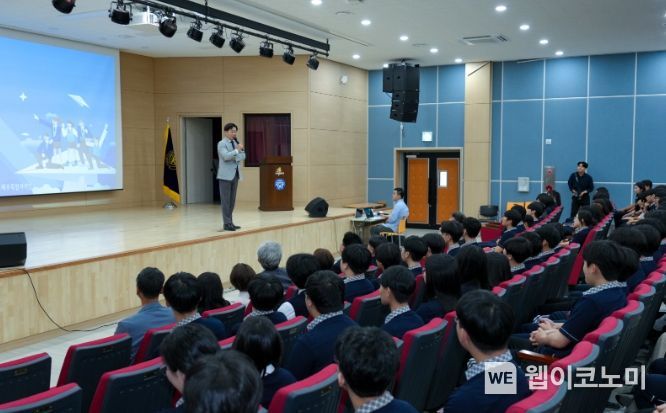 (웹이코노미) 오영훈 제주특별자치도지사는 17일 제주중앙고등학교(교장 현영철)에서 특별강연을 진행하고 청소년 세대와 함께하는 미래 비전을 제시했다.